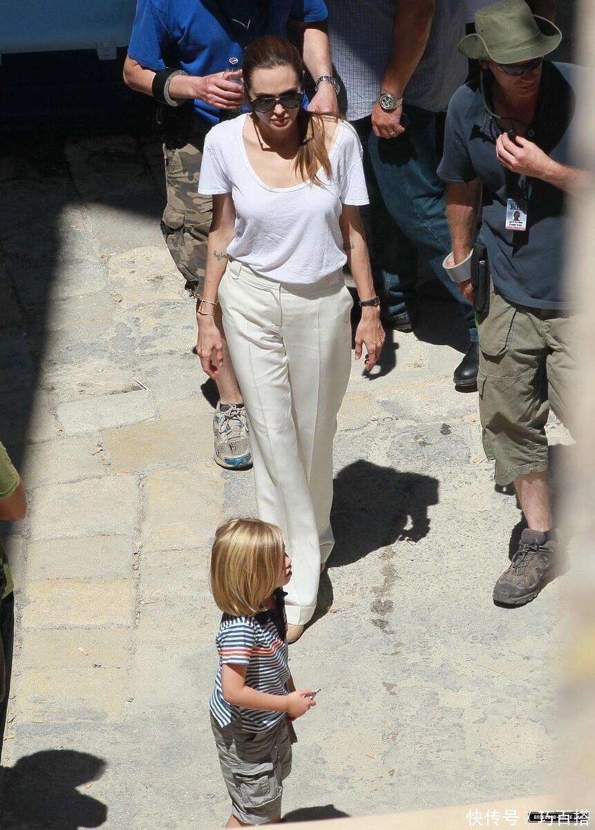 在孩子还小她还年轻的时候,她会以露腿短裤为主,但随着年龄的增长,安吉丽娜朱莉基本没有穿过膝盖以上的短裤、短裙了。